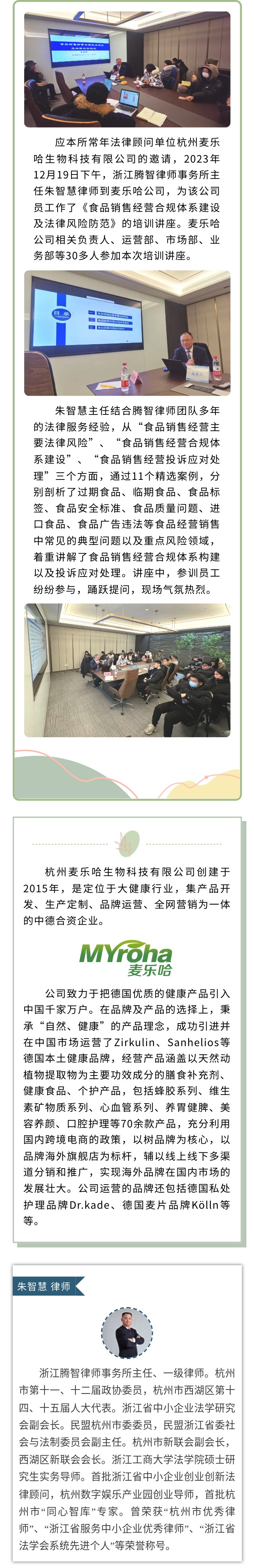 朱智慧主任应邀为杭州麦乐哈生物科技有限公司作法律培训讲座