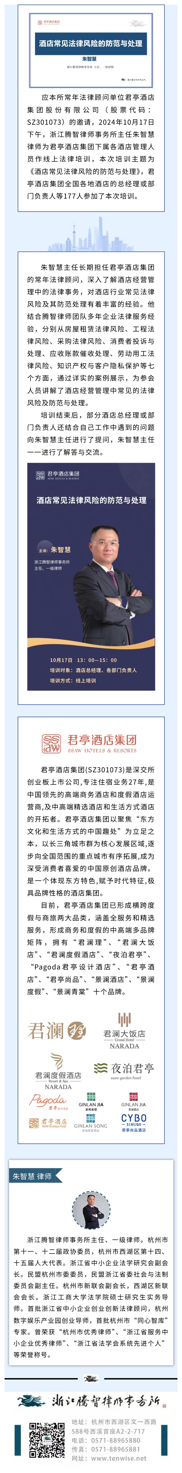 朱智慧主任为君亭酒店集团作《酒店常见法律风险的防范与处理》法律培训