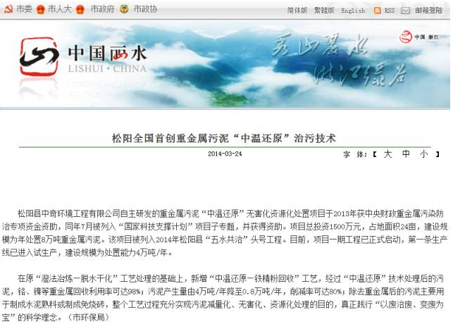 松阳县中奇环境工程有限公司在从事工业污水治理方面,一直注重资源回收型工艺和相关技术的研发,拥有多项相关专利技术,尤其在有价资源综合利用、变废为宝方面有着独到的见解,在业界拥有较高的知名度。