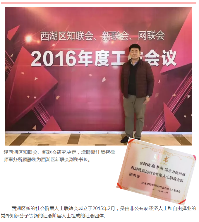 2017年1月14日下午,西湖区党外知识分子联谊会、西湖区新的社会阶层人士联谊会、西湖区网络界人士联谊会在杭州西溪纳德润泽园度假酒店联合召开了2016年度工作会议。