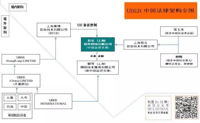 所以,我们看到比如说亚马逊只能通过合资公司北京世纪卓越信息技术有限公司的形式在中国开展互联网电子商务经营。UBER决定直接架设VIE,以吾步上海(纯内资公司)作为经营实体,在中国境内开展经营,这样即可以直接避开外商投资的限制。