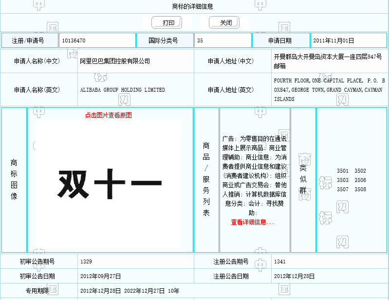 根据商标局网站的检索结果显示,早在2012年底阿里即取得了第35类广告、替他人推销等服务项目的“双十一”注册商标,且同时不管有用无用大量防御性注册了9类,16类,38类等其他类别商标。而在去年2014年10月底,不少电商平台均收到了一封通告函。根据曝光的通告函内容,阿里已取得 “双十一”注册商标,经阿里巴巴集团授权,天猫就“双十一”商标享有专用权、受法律保护,其他任何人的使用行为都是商标侵权行为。在强大的阿里强势的姿态面前,当时可把其他电商宝宝吓坏了,于是乎“双十一”当日网站页面宣传用语上改名的改名,声明的声明等等。可静下来细细思之,阿里能否使用注册商标“双十一”来维权呢?笔者认为: